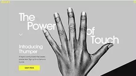以Vibrant的网页设计为例,他们的首页中背景和图像都采用的是黑白色调,但是LOGO,按钮都采用的是闪亮的黄色,这样可以很快抓住用户的注意力。Takeit的页面设计同样如此,整屏的蓝色背景让白色的网页元素显得非常明显。白色的大标题是视觉重心,然后用户会注意到标题周围的App Store按钮和LOGO。